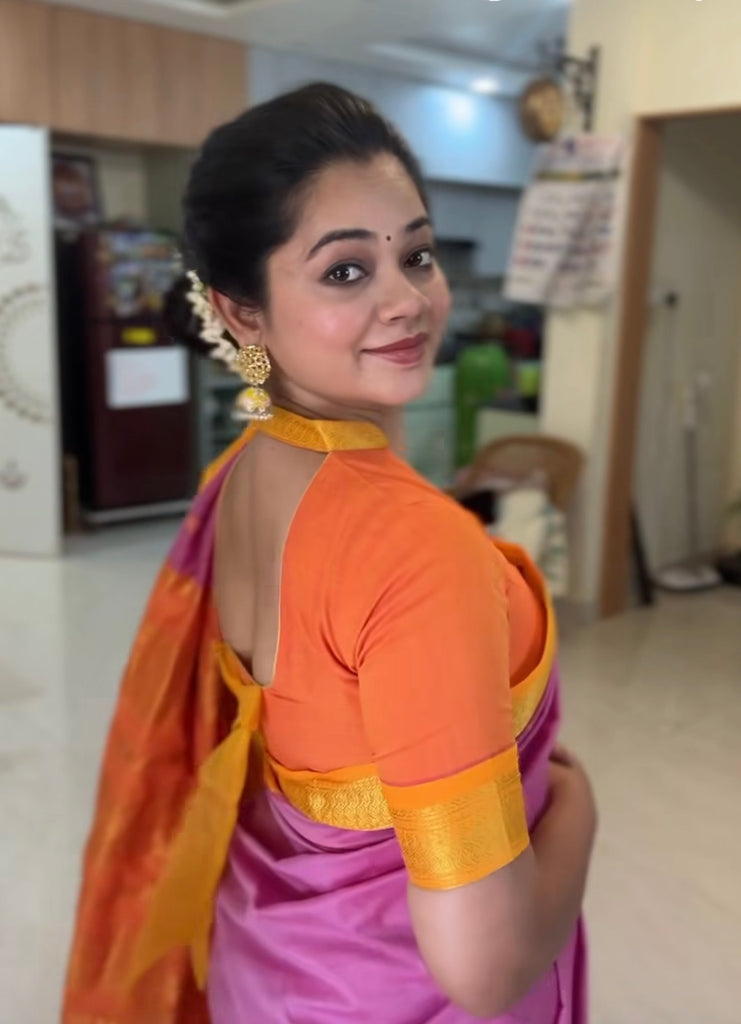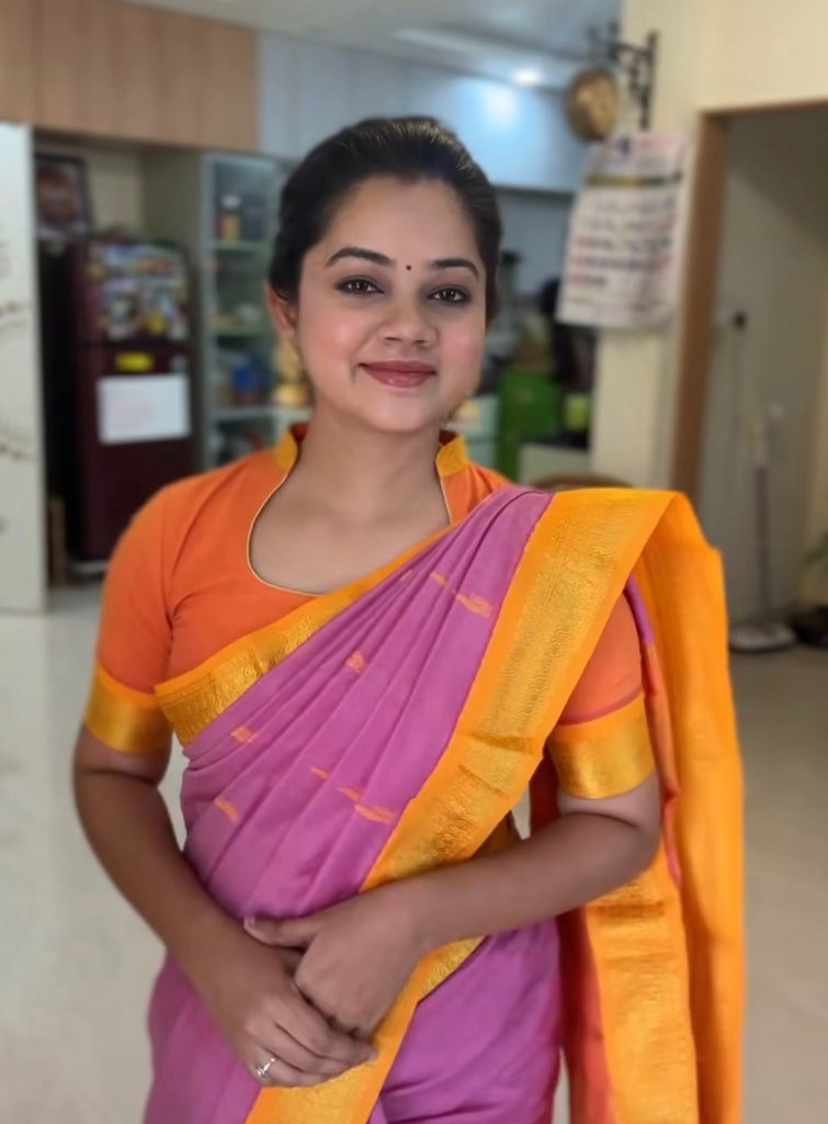 Introducing Aakriti - a luxurious semi-silk cotton saree that exudes elegance and sophistication. The vibrant lavender with orange blend is beautifully complemented by a gold zari detailed border and pallu. With the coordinating blouse fabric included, you'll have a complete and timeless look for any occasion.Buttas and border is not constraint.