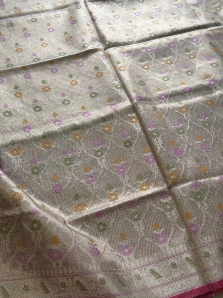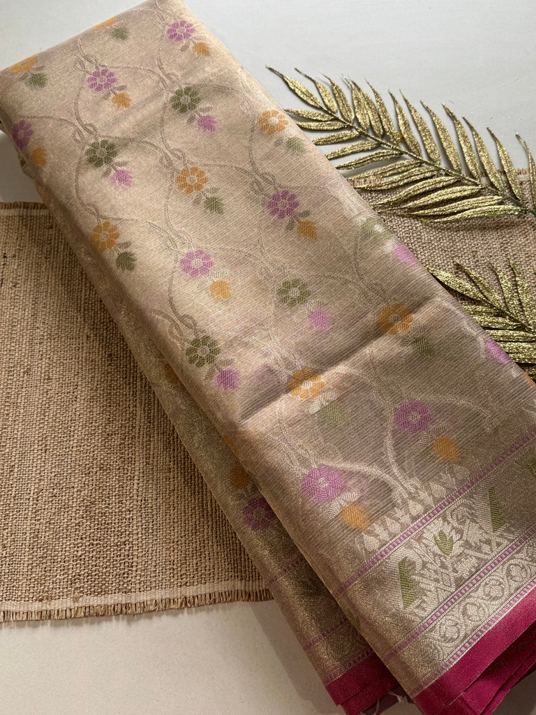 Tags: Tissue Saree, Gold Tissue Saree, Banarasi Tissue Saree, Zari Kota Saree, Banarasi Zari Kota Saree, Banarasi Meenakari Saree, Jaal Pattern Saree, Banarasi Saree, Festival Collections, Wedding Saree, Traditional Saree, Boutique Collections, Exclusive Saree.