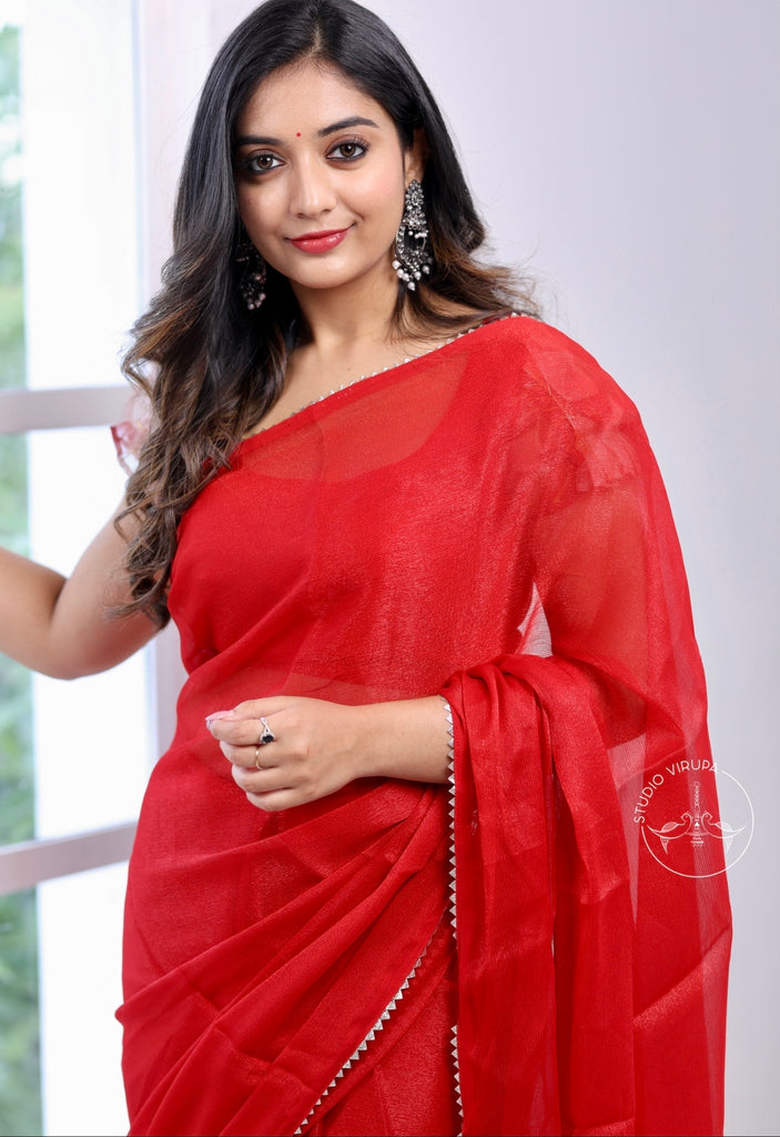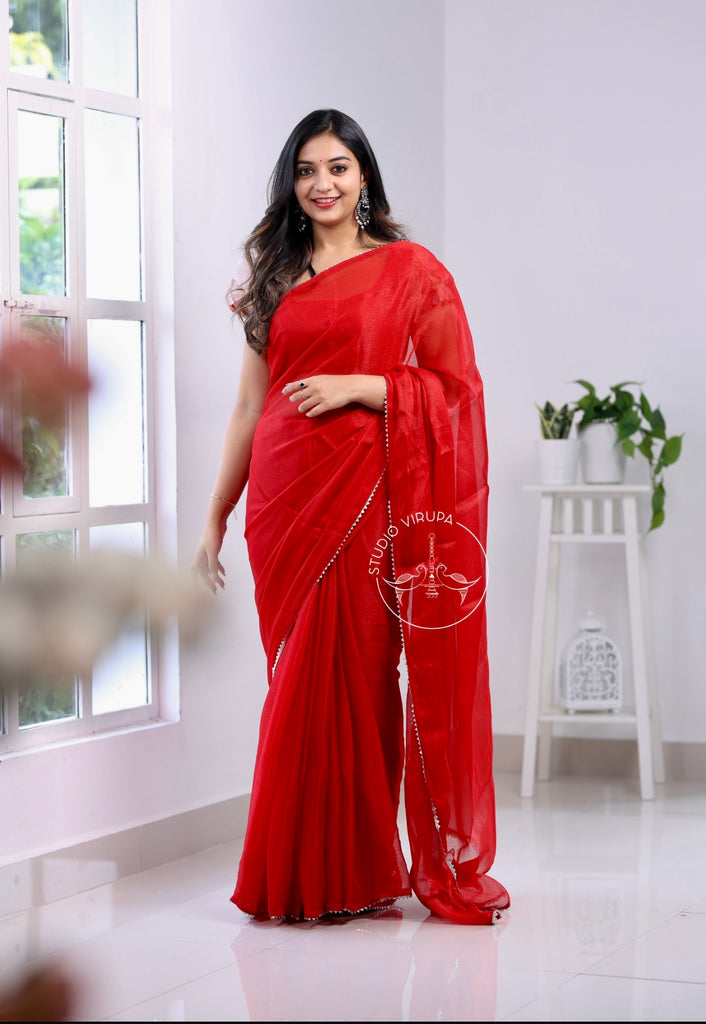 Step into elegance with our stunning shimmering Georgette saree collection, featuring delicate pastel colours that will make you shine!