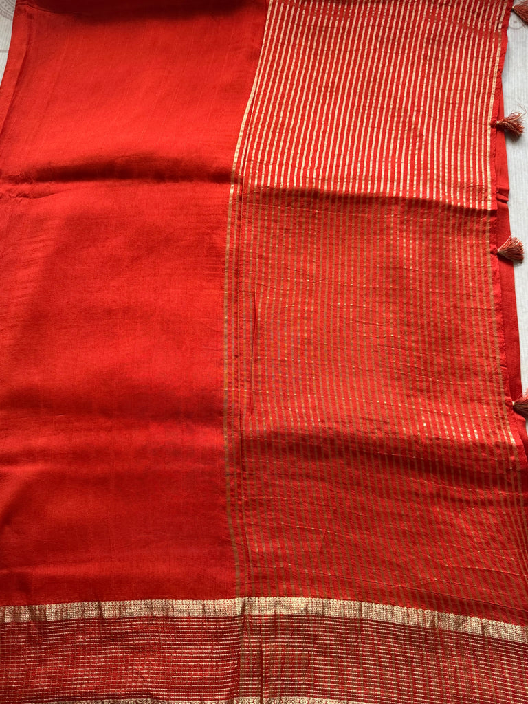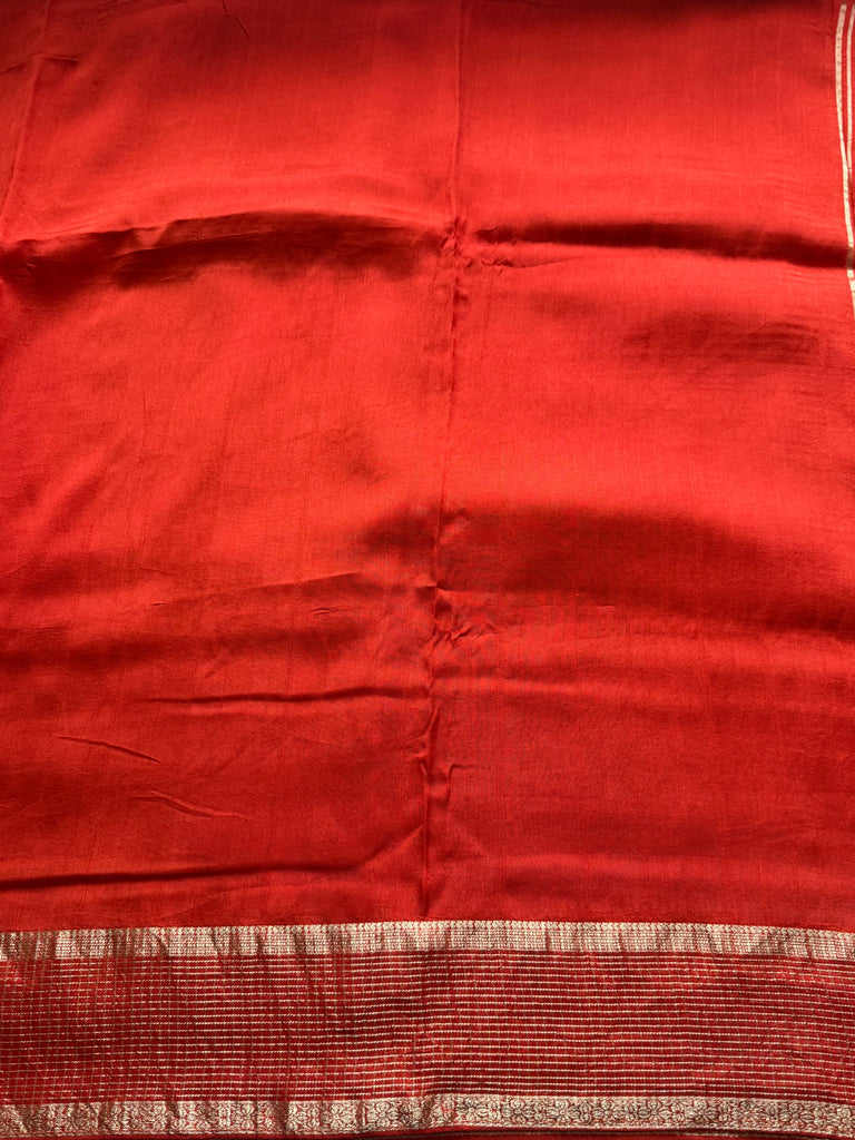 Radiating timeless charm, this orange crepe silk saree is a perfect blend of understated elegance and festive allure. Crafted in soft crepe silk, the saree drapes fluidly, offering a graceful silhouette with a subtle sheen that enhances its rich hue. The highlight lies in its refined golden woven border, adding a touch of traditional richness while maintaining a contemporary appeal.