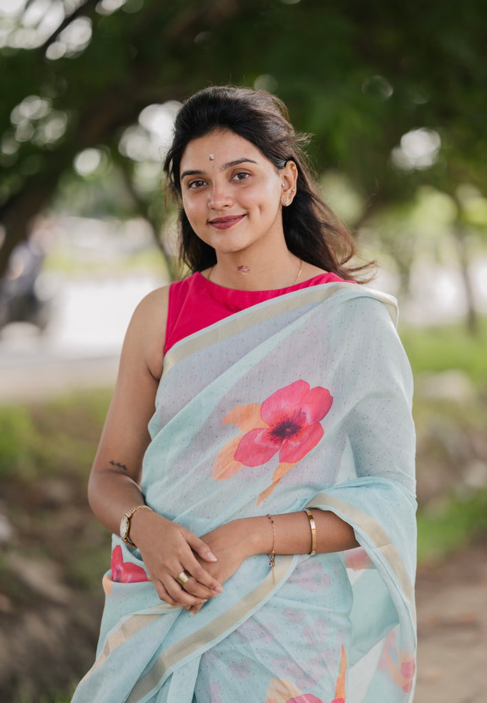 Introducing Shriya, the perfect saree for all your office wear needs. Made with lightweight and comfortable materials, Shriya will keep you feeling stylish and professional all day long. Say goodbye to heavy and restricting sarees, and hello to effortless elegance. Experience the benefits of Shriya for yourself.