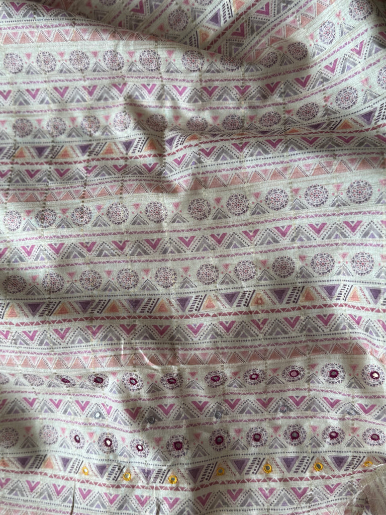 What sets this saree apart is the intricate bead work delicately spread across the entire body, adding a touch of sparkle and artisanal elegance. Effortlessly chic yet rooted in tradition, this saree is ideal for festive gatherings, celebrations, or even as a statement piece in your wardrobe.