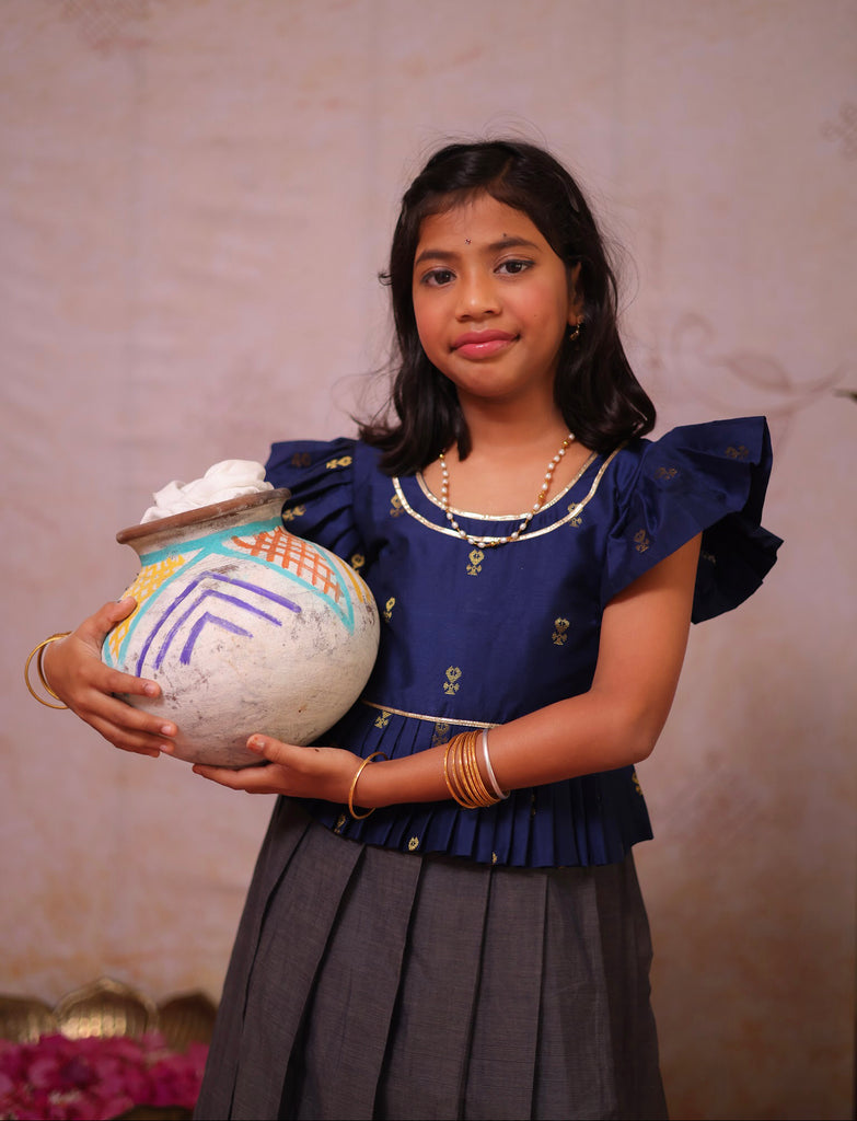 Introducing Virupa's exclusive Diwali collection, featuring a beautifully tailored crop top and skirt for kids. Made with high-quality cotton material, this festive ensemble offers both style and comfort for your little one. Elevate their wardrobe with this must-have for the holiday season.