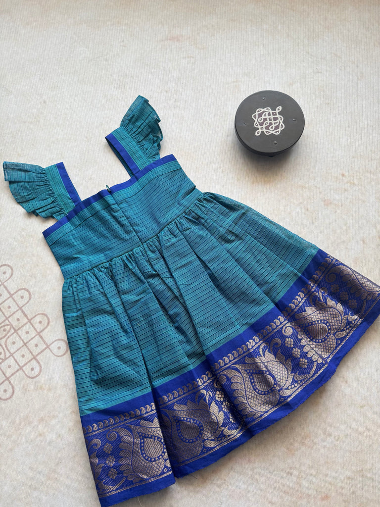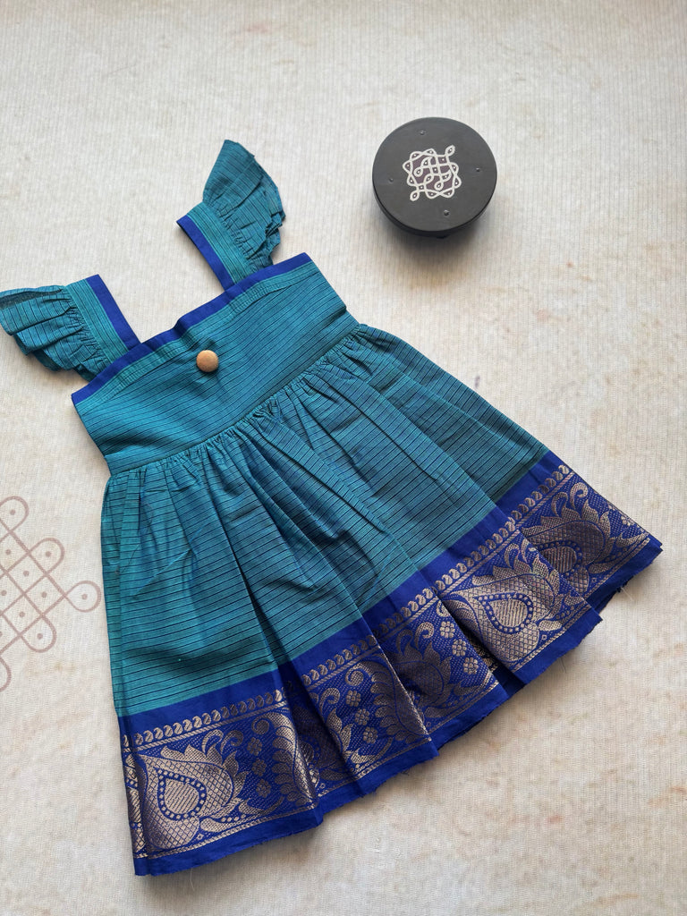 Indulge your little one in luxury with our Chettinad Cotton Kids Frock. Made from high-quality Chettinad Cotton, this stunning frock showcases a beautiful blue zari border design. With comfort and style in mind, let your child stand out in this elegant and exclusive piece.