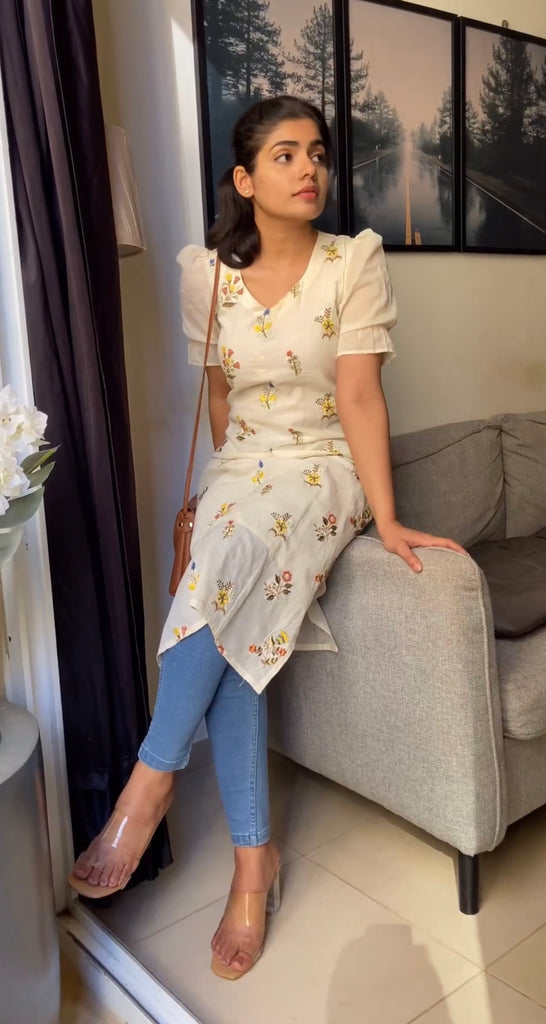 Tags: White Kurta for Women, Women Straight Kurta, Pure Cotton White Kurti, White Embroidered Kurta, White Floral Embroidery Kurta, Onam Kurti, Onam Special Kurtis, Cotton Onam Kurta.