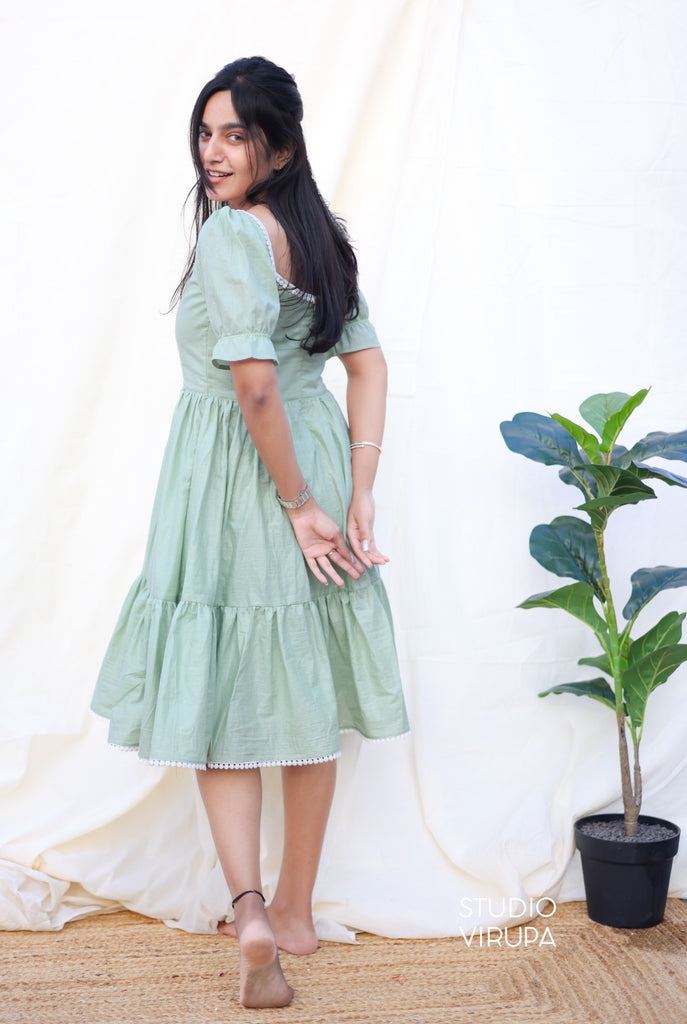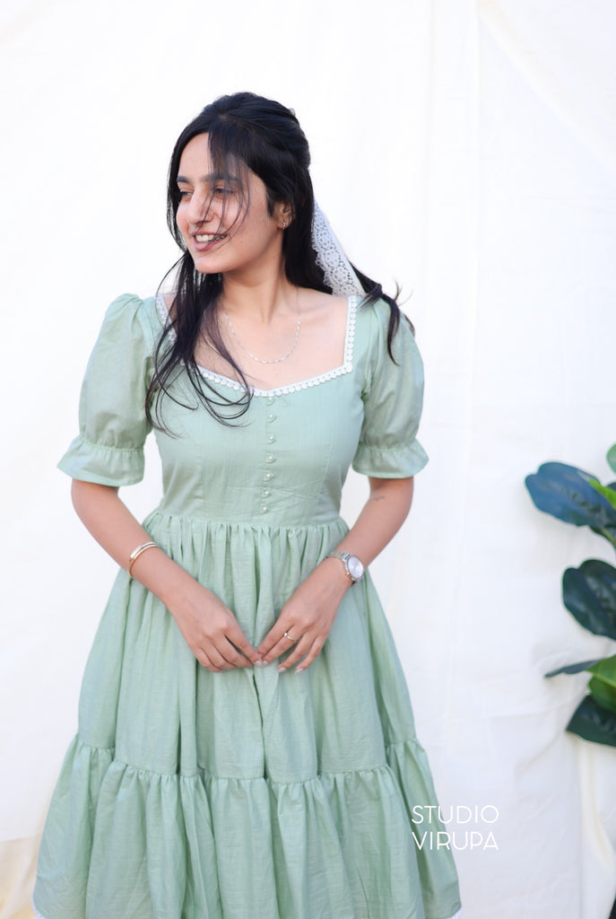 Elevate your everyday style with our Gulabi dress in Green! Made with pure cotton, it's perfect for daily wear. The delicate white lace adds a touch of elegance, making you stand out in the crowd. Indulge in comfort without compromising on style!