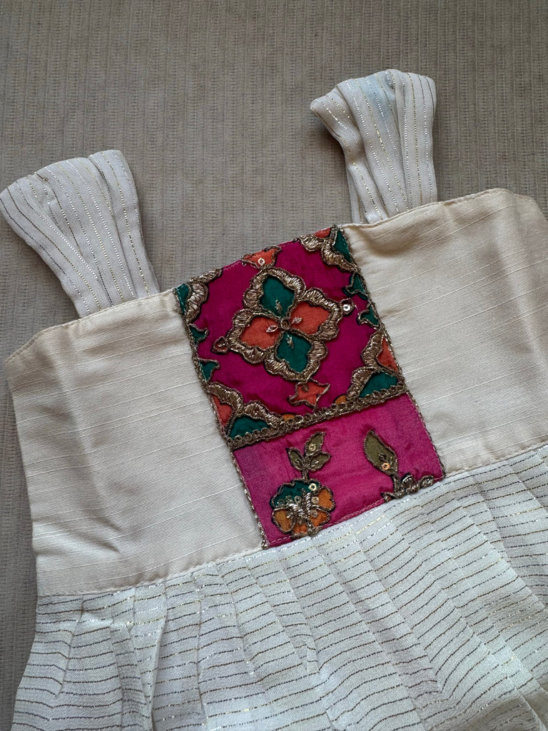 Expertly crafted with soft and lightweight floral georgette fabric, the Laila Kids Frock is perfect for any occasion. The delicate floral designs on the yoke add a touch of elegance, while the laila lines on the bottom create a fun and playful look. Make your little one stand out in style with this beautiful frock.