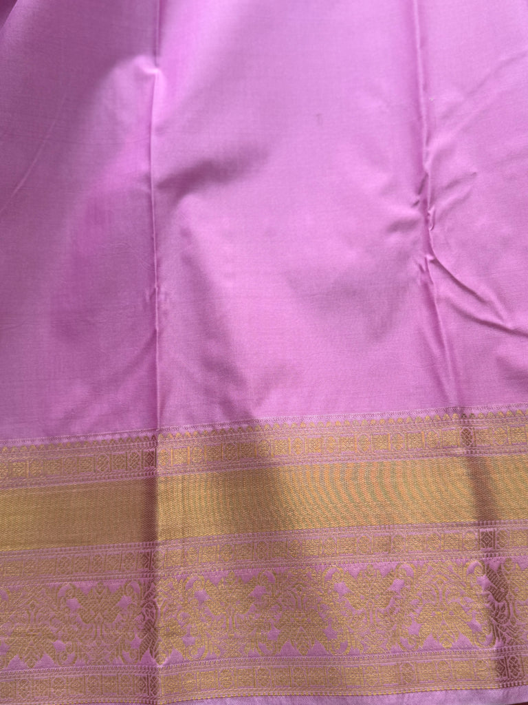 Tags: Semi Kanchi Silk Saree, Purple Saree, Zari Butta Saree, Contrast Border Saree, Festive Saree, Traditional Saree, Kanchipuram Style Saree, South Indian Saree, Silk Saree, Ethnic Saree