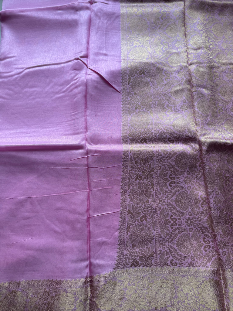 Grace meets sophistication in this exquisite plain onion pink Dola silk saree, designed to make a timeless statement. Crafted from premium Dola silk, the saree features a luxurious sheen and smooth drape that enhances its rich texture. The highlight of this piece is its intricately woven zari border, adorned with traditional motifs of floral patterns in shimmering zari threadwork.
