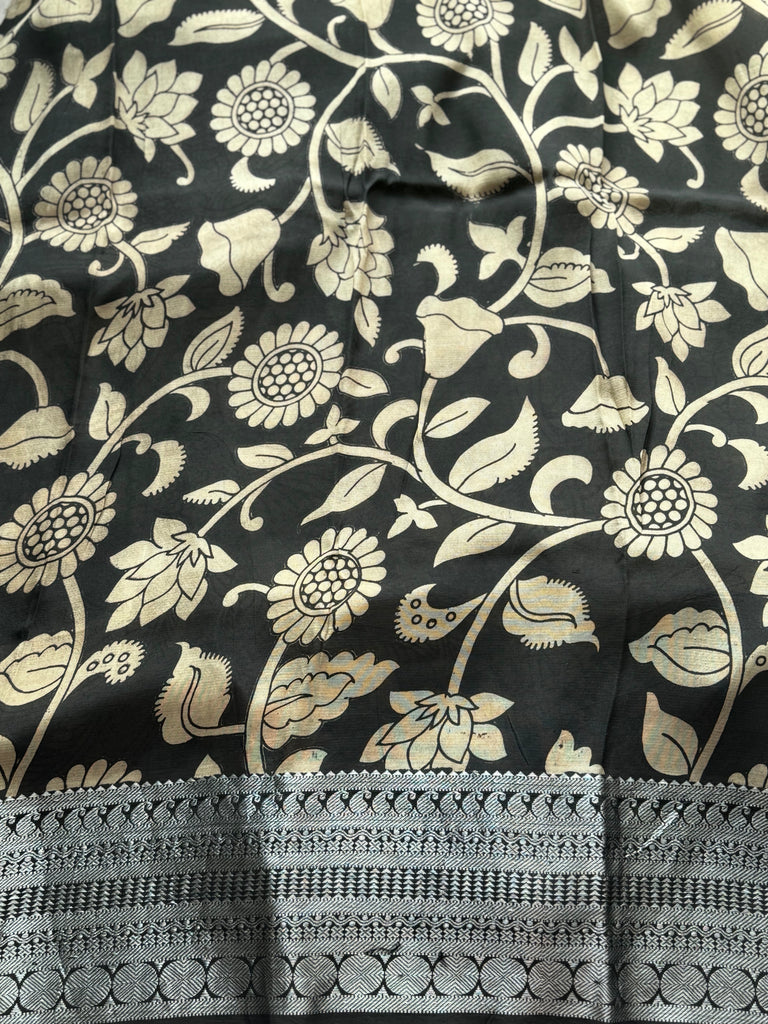 Discover the epitome of elegance with Chinnuri Silk Outline Pen Kalamkari sarees. These sarees feature a mesmerizing outline pen kalamkari design, creating a sophisticated and timeless look. Made with luxurious Chinnuri Silk, these sarees are sure to elevate your style.