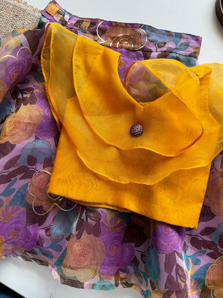 This set of kids' crop top and skirt, made of organza and featuring a stunning combination, exudes elegance and enhances the beauty of your child.