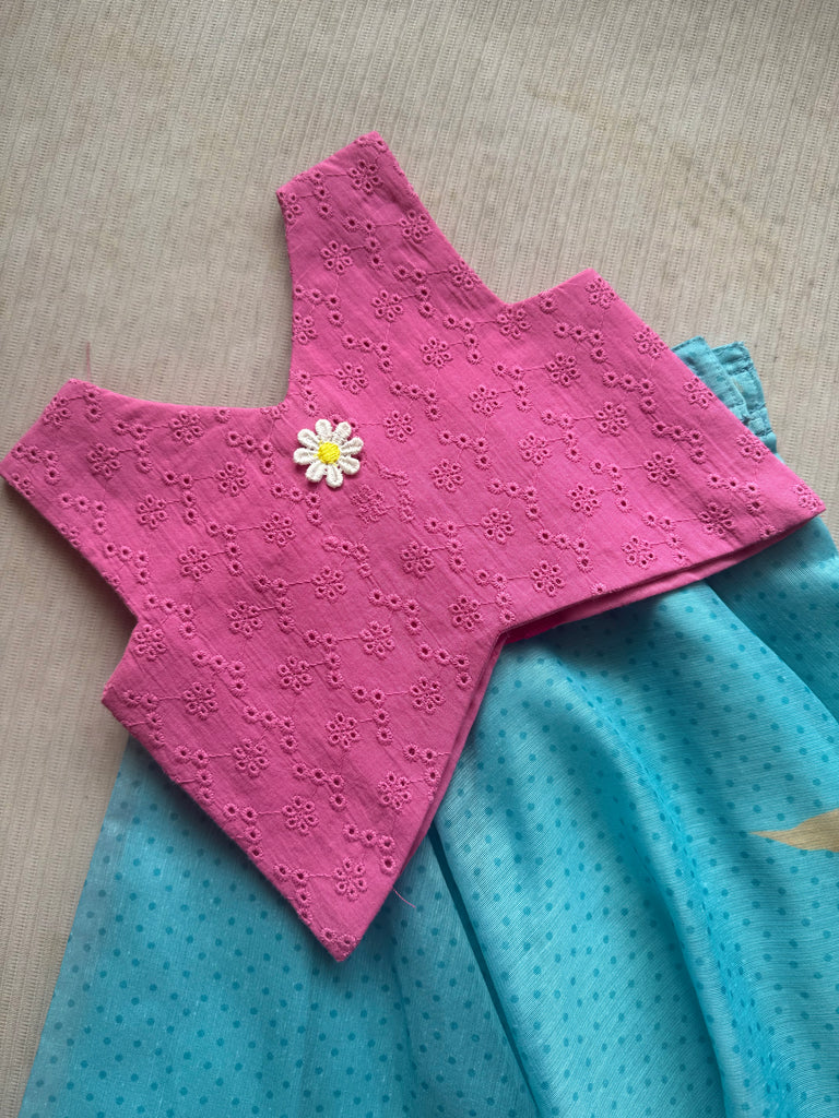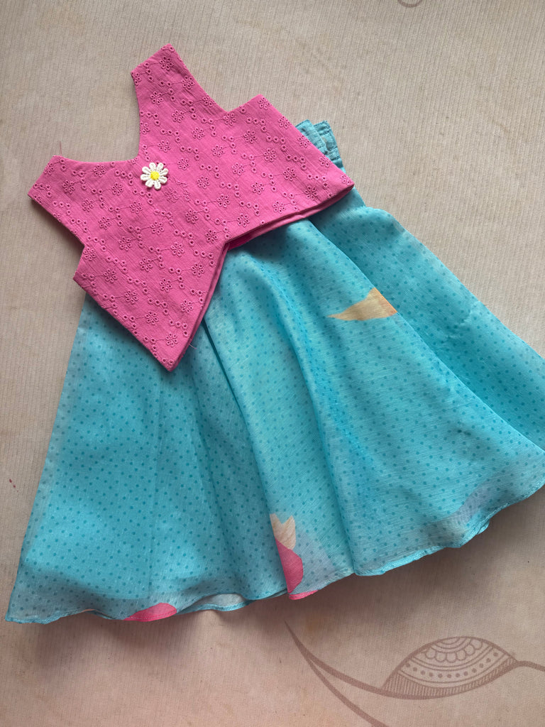 Introducing the Hakoba crop top and Shriya blue skirt for kids. Made from high-quality materials, this set offers both comfort and style for your little one. With its charming color combination, it's perfect for any occasion. Elevate your child's wardrobe with this classy and trendy outfit.