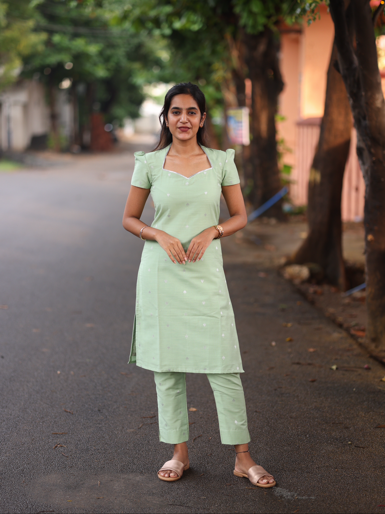 Upgrade your wardrobe with the Siara kurta and pant set, designed to elevate your everyday style with comfort and versatility in mind. The set features a Sweetheart neck and short sleeve, crafted with high-quality materials to ensure both fashion and function. As a must-have for any fashion-forward individual, the Siara set is perfect for formal and casual occasions alike.