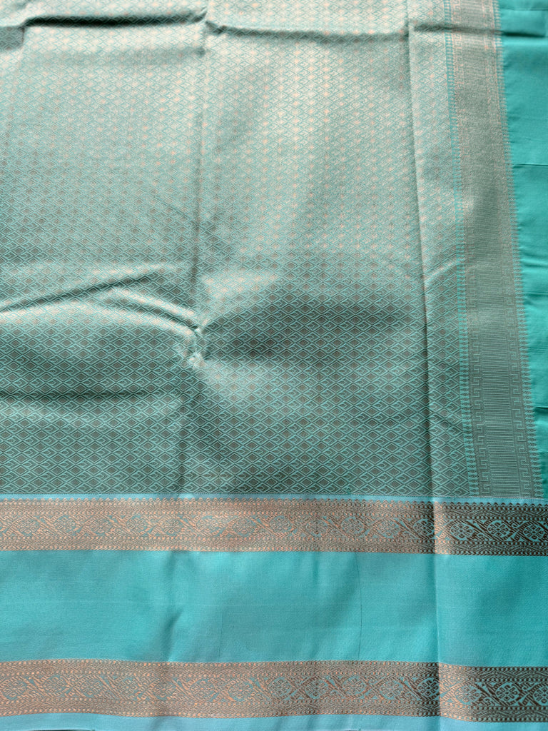 Elevate your ethnic elegance with this exquisite Vegan Semi Kanchi Silk Saree, a perfect blend of tradition and compassion. Crafted from premium vegan silk, this saree offers the luxurious sheen and drape of authentic Kanchipuram silk—without any use of animal-derived materials.