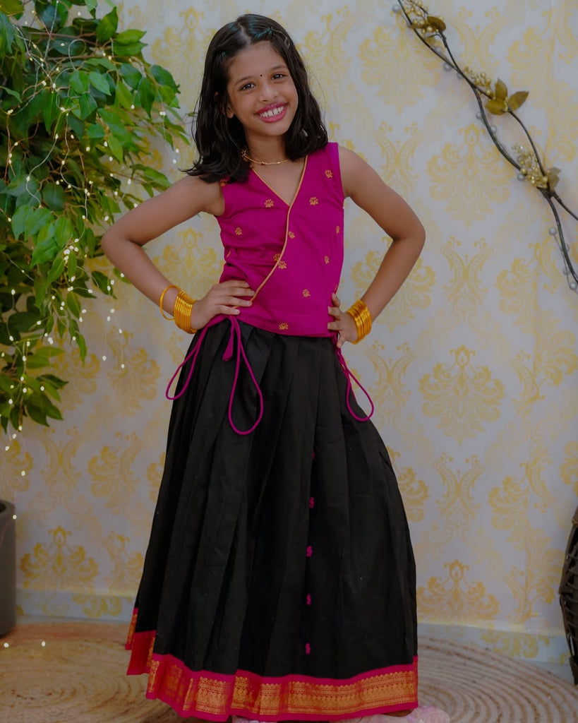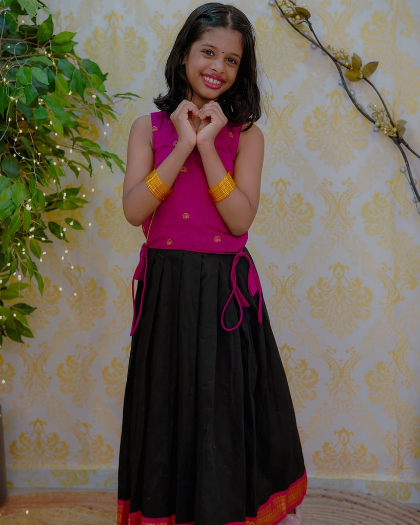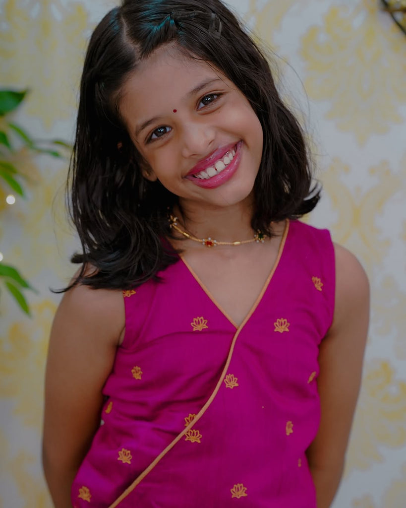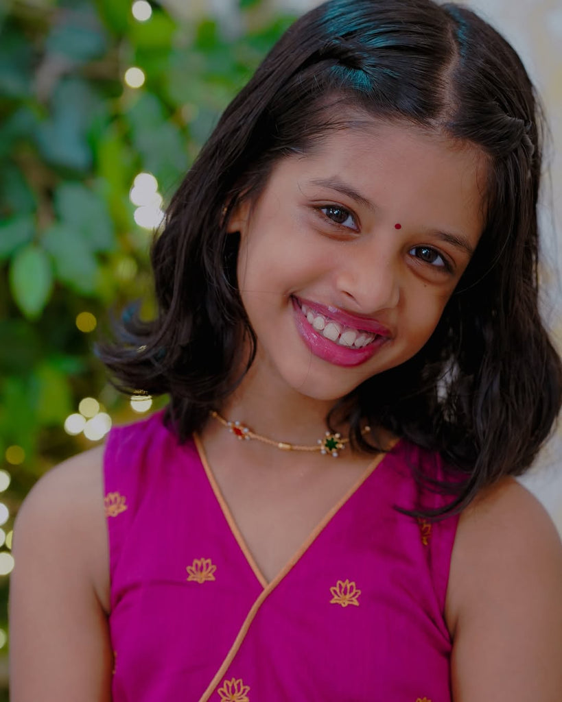 Dress your little one in the Aakriti crop top and skirt set for a stylish look. Made with semi silk fabric, its sequin detailing adds a touch of sparkle. Perfect for any occasion, this set will keep your child comfortable and fashionable.