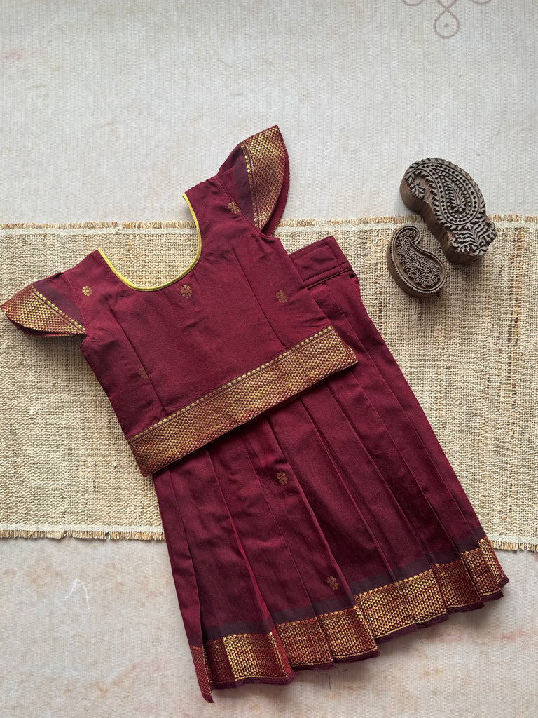 Dress your little one in the Aakriti crop top and skirt set for a stylish look. Made with semi silk fabric, its sequin detailing adds a touch of sparkle. Perfect for any occasion, this set will keep your child comfortable and fashionable.