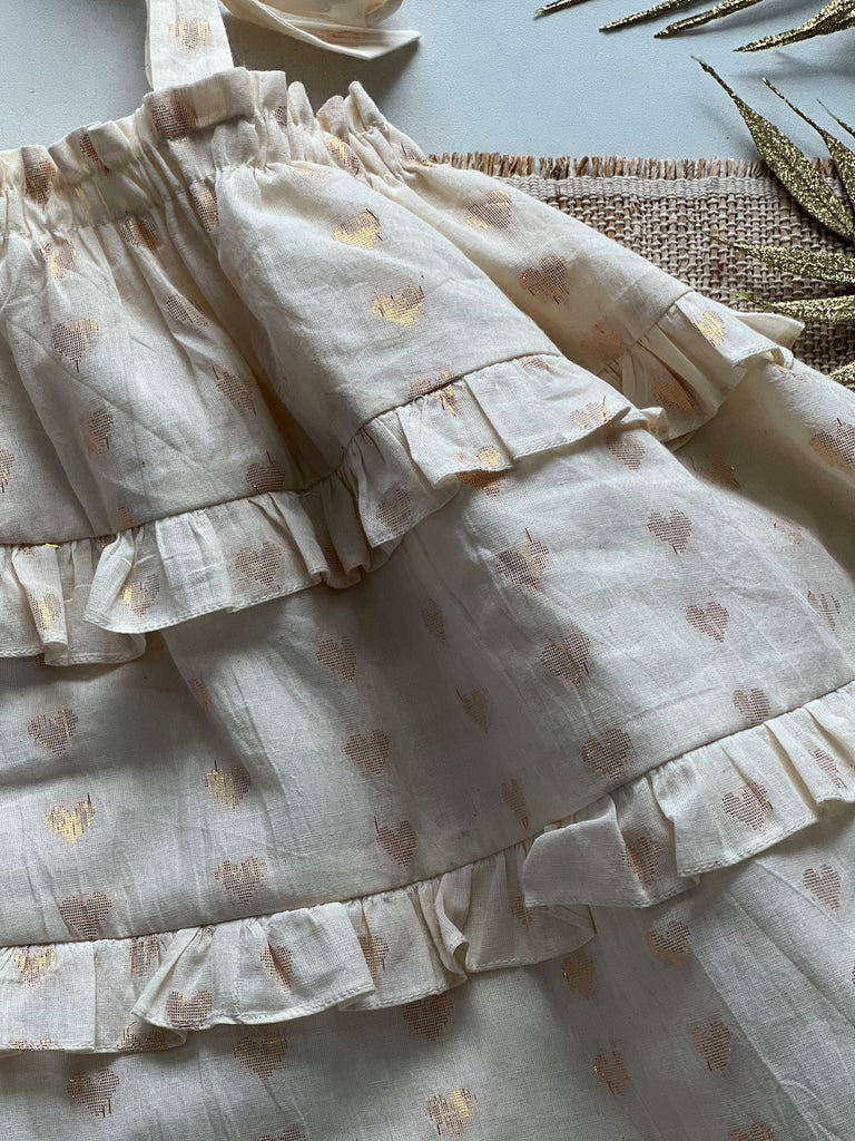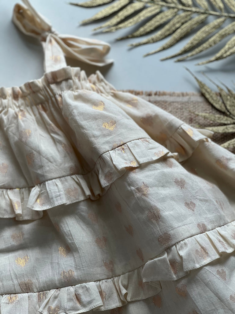 This three-layer pure cotton frock from Heartly Kids is a perfect choice for celebrating the Onam festival. With its comfortable and high-quality material, your child will feel stylish and festive. Add this to their wardrobe now and let them stand out with an elegant and traditional look.