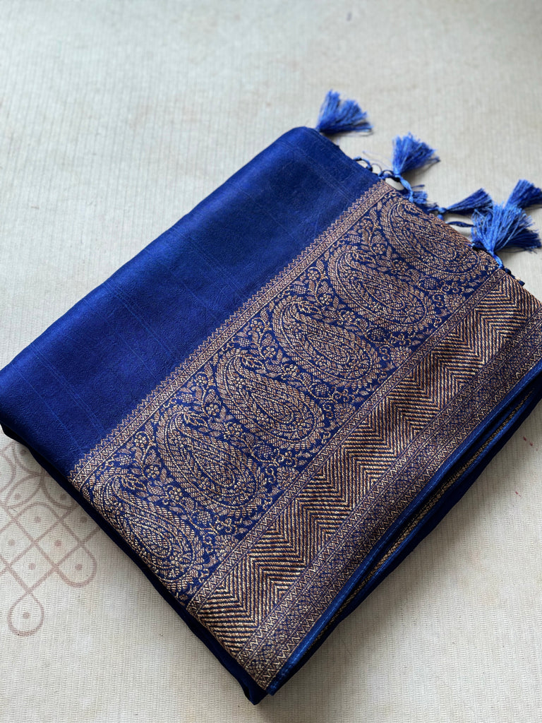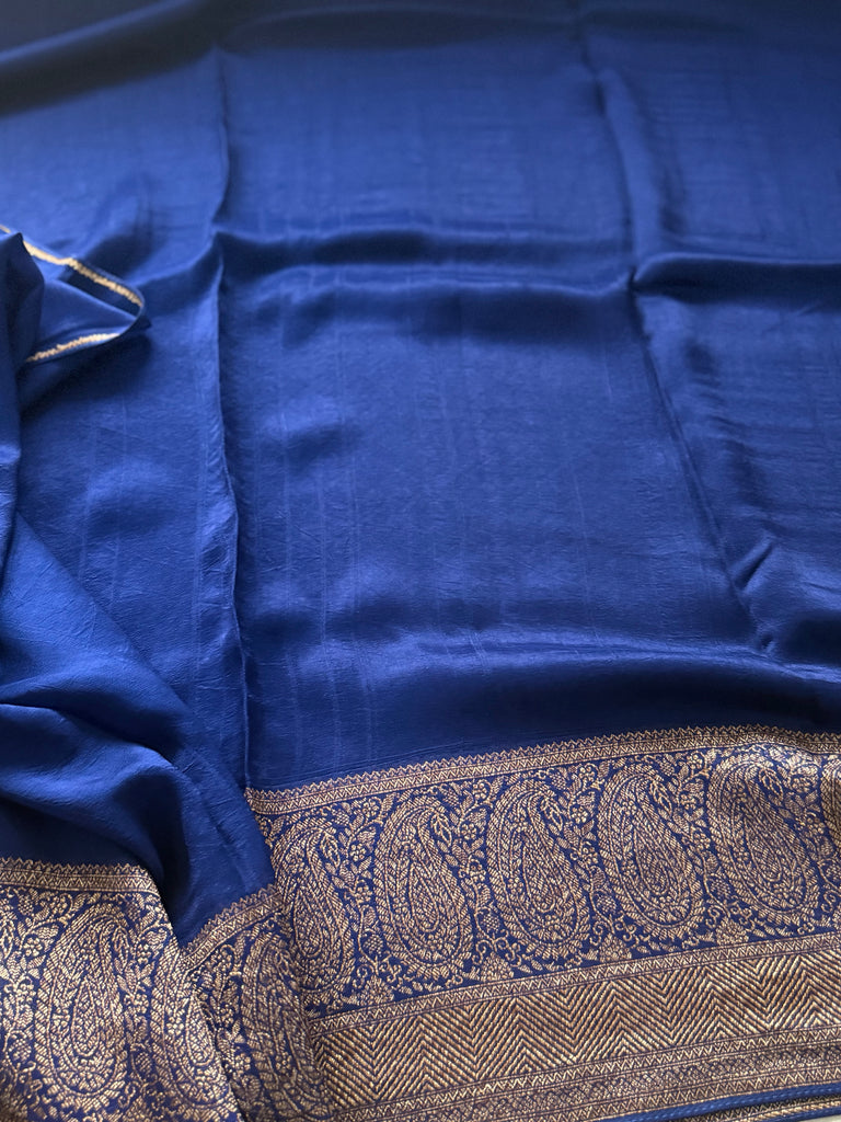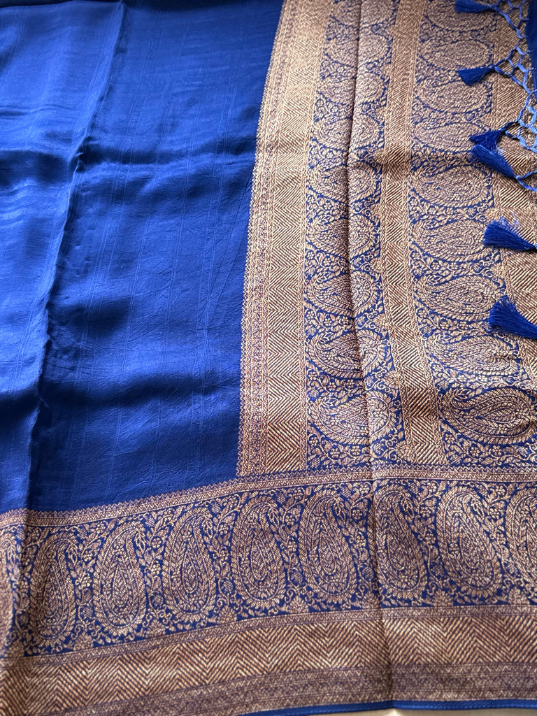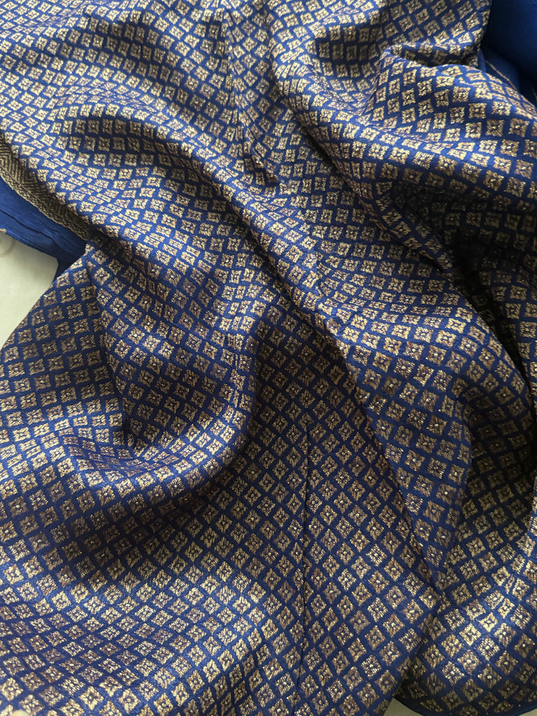 Paired with a stunning brocade blouse featuring intricate zari motifs, this ensemble perfectly complements the simplicity of the saree’s body. Elegant, classic, and enduringly stylish, this Antique Banarasi piece is ideal for those who appreciate heritage craftsmanship with a refined, understated finish.
