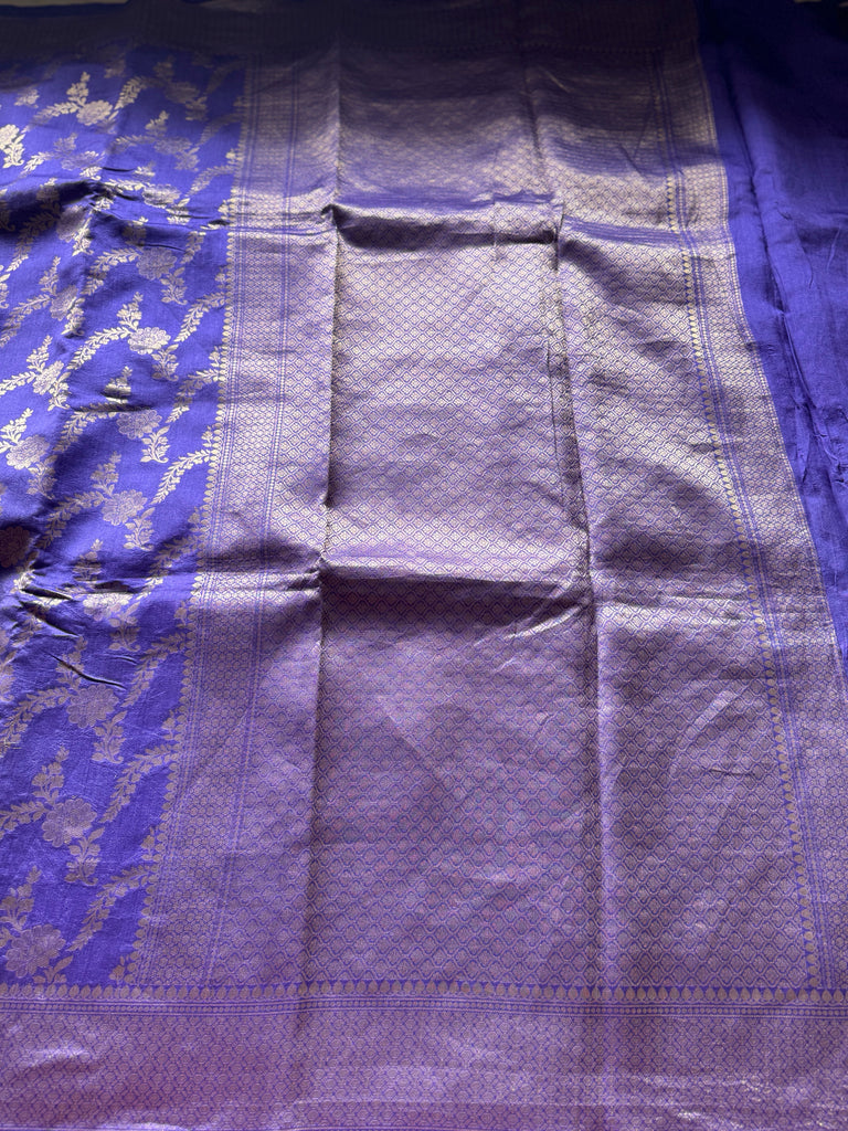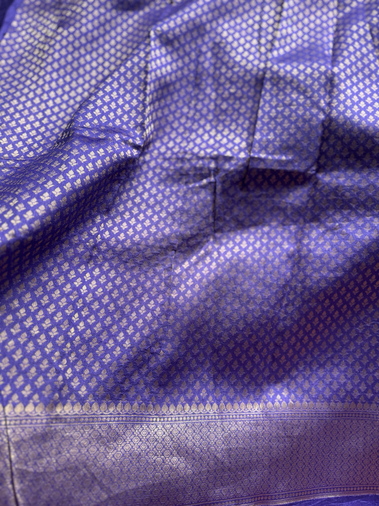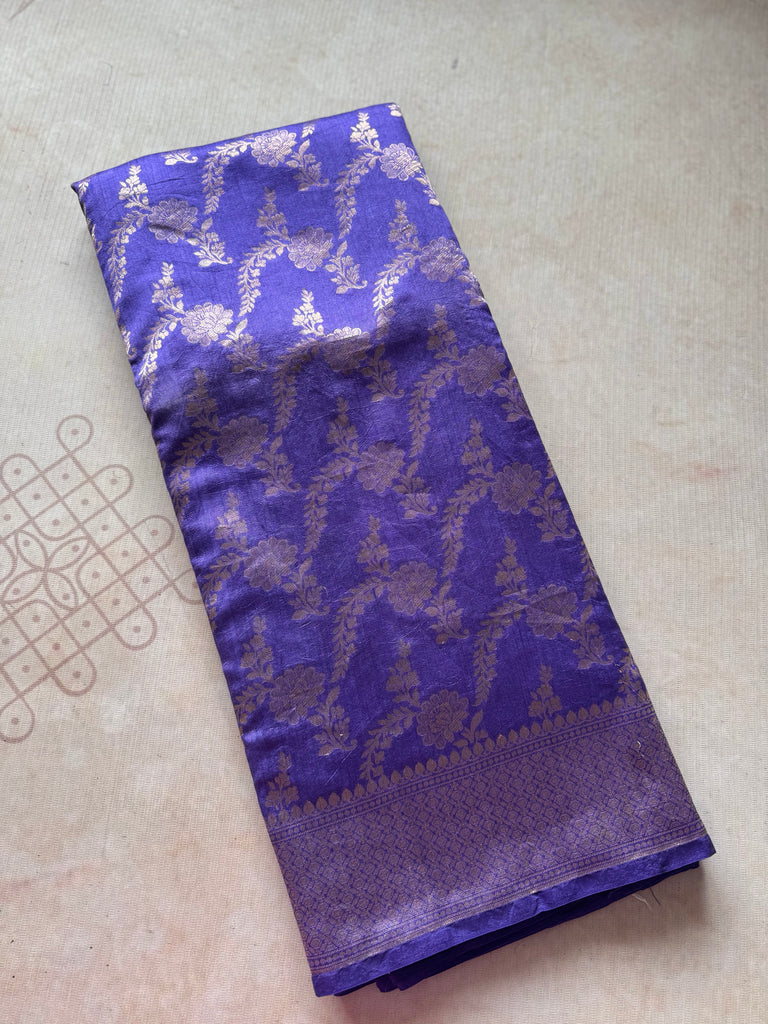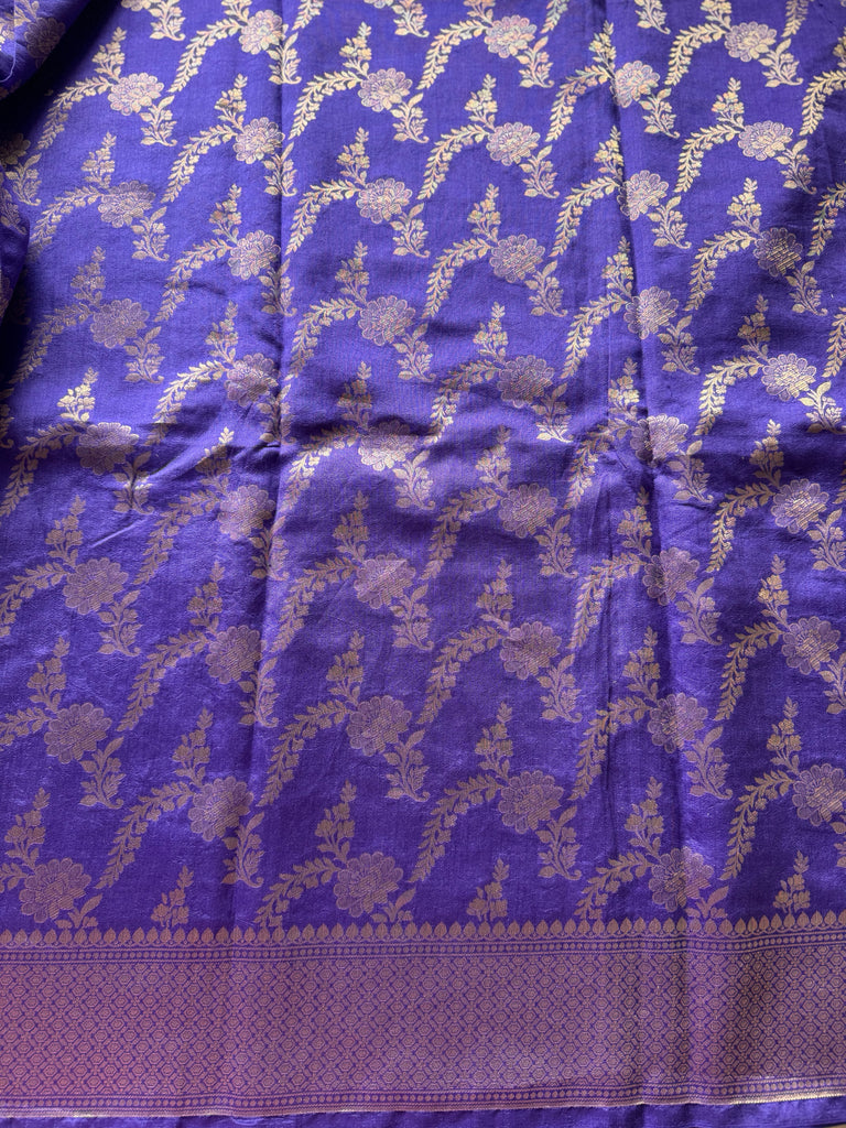 This exquisite dusty pink saree is crafted from premium Pure Chiniya silk, known for its soft texture and lustrous finish. The body features jaal patterns with floral motifscreating a vibrant interplay of color and pattern. The all-over jaal design adds depth and traditional charm to the fabric surface.