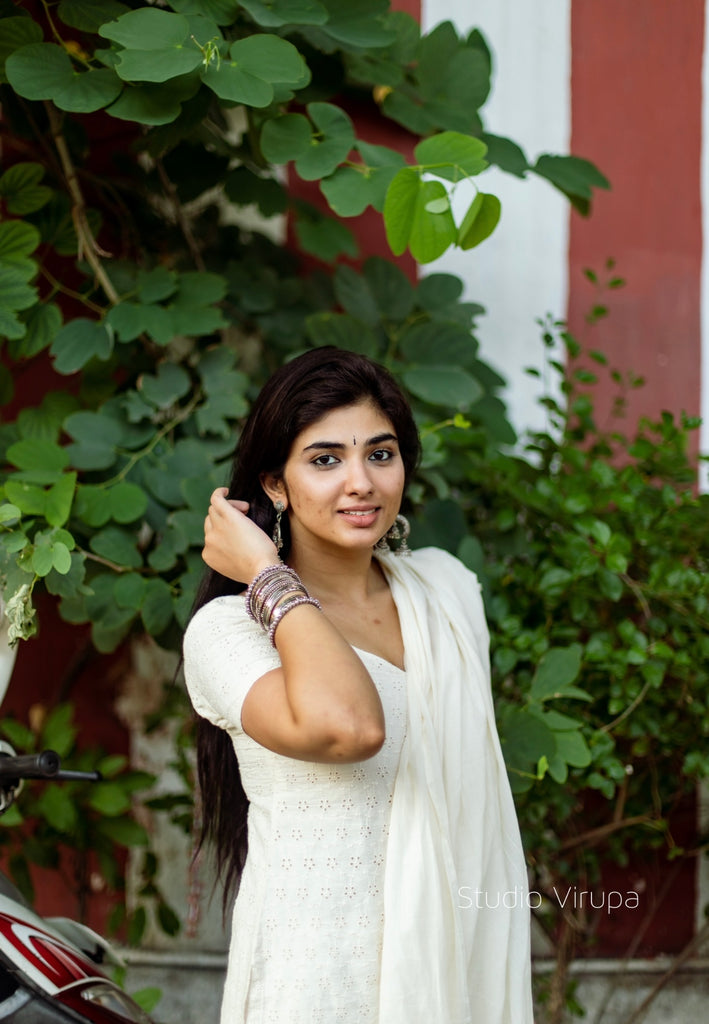 Kurta set designed in a Beautiful Half white pure cotton Hakoba !