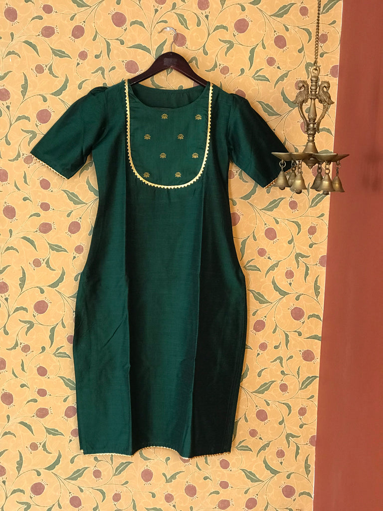 Exclusive Kurta ,Kurta designed in a Beautiful green shade with lotus embroidery work !