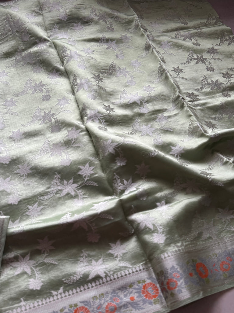 Perfect for festive occasions, weddings, or sophisticated gatherings, this saree captures the essence of timeless elegance with a touch of modern freshness.
