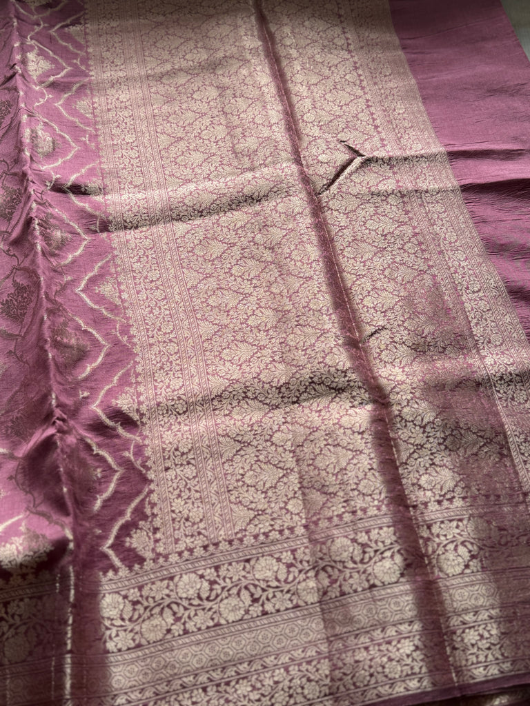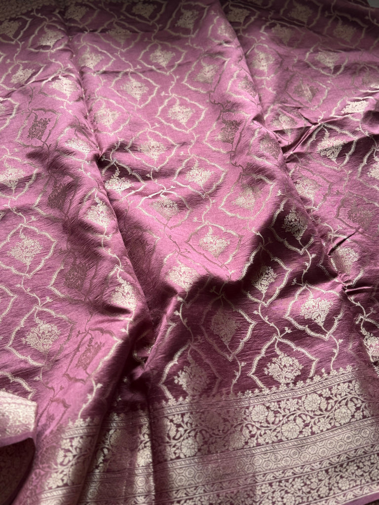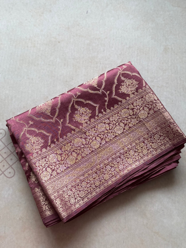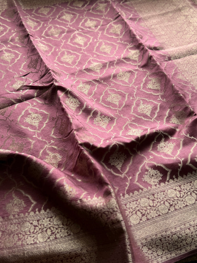 Elevate your ethnic style with this elegant Banarasi Raw Mango Silk Saree, a perfect blend of traditional craftsmanship and understated luxury. The saree comes in onion pink shade , highlighted with a refined zari weave that adds a soft, lustrous sheen.