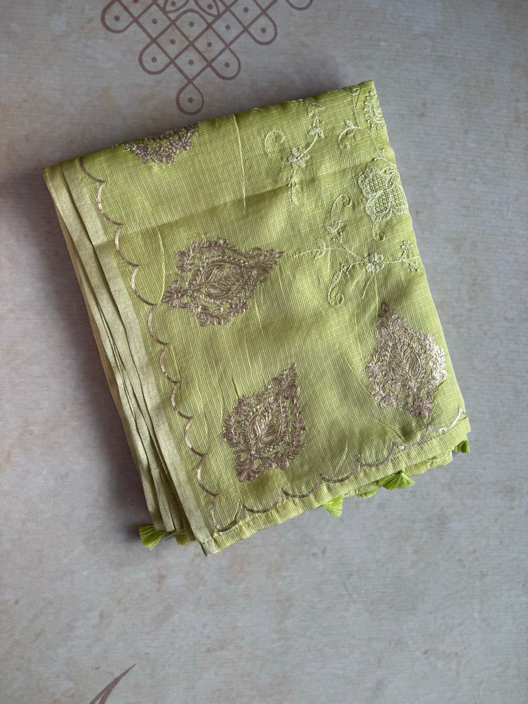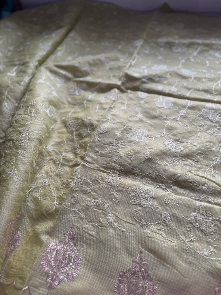 Elevate your ethnic wardrobe with our exquisite Chanderi sarees, beautifully adorned with intricate hand-embroidered Pita work. Crafted in luxurious Chanderi fabric, each saree is a testament to fine craftsmanship and timeless elegance.