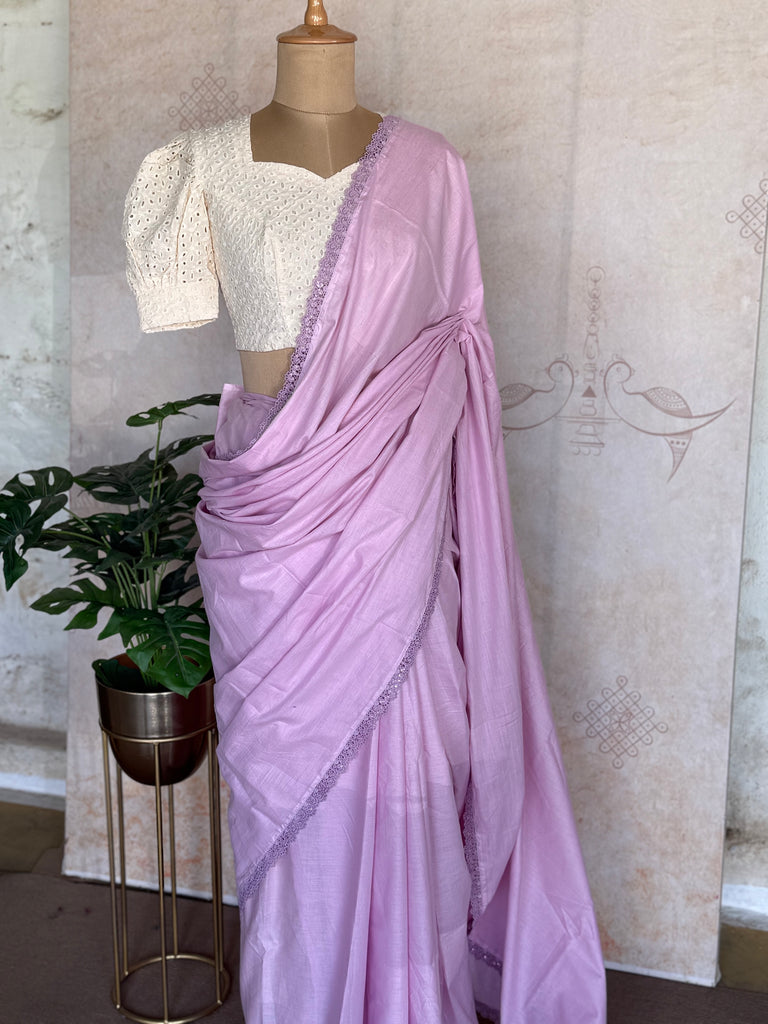 Tags: Gulabi Saree, Lilac Saree, Hakoba Lace, Pastel Saree, Festive Wear, Wedding Wear, Minimal Saree, Modern Ethnic, Lightweight Saree, Elegant Saree, Day Wear Saree, Puja Saree, Soft Saree, Indian Wear, Designer Saree, Pastel Pink Saree, Lace Saree, Summer Saree