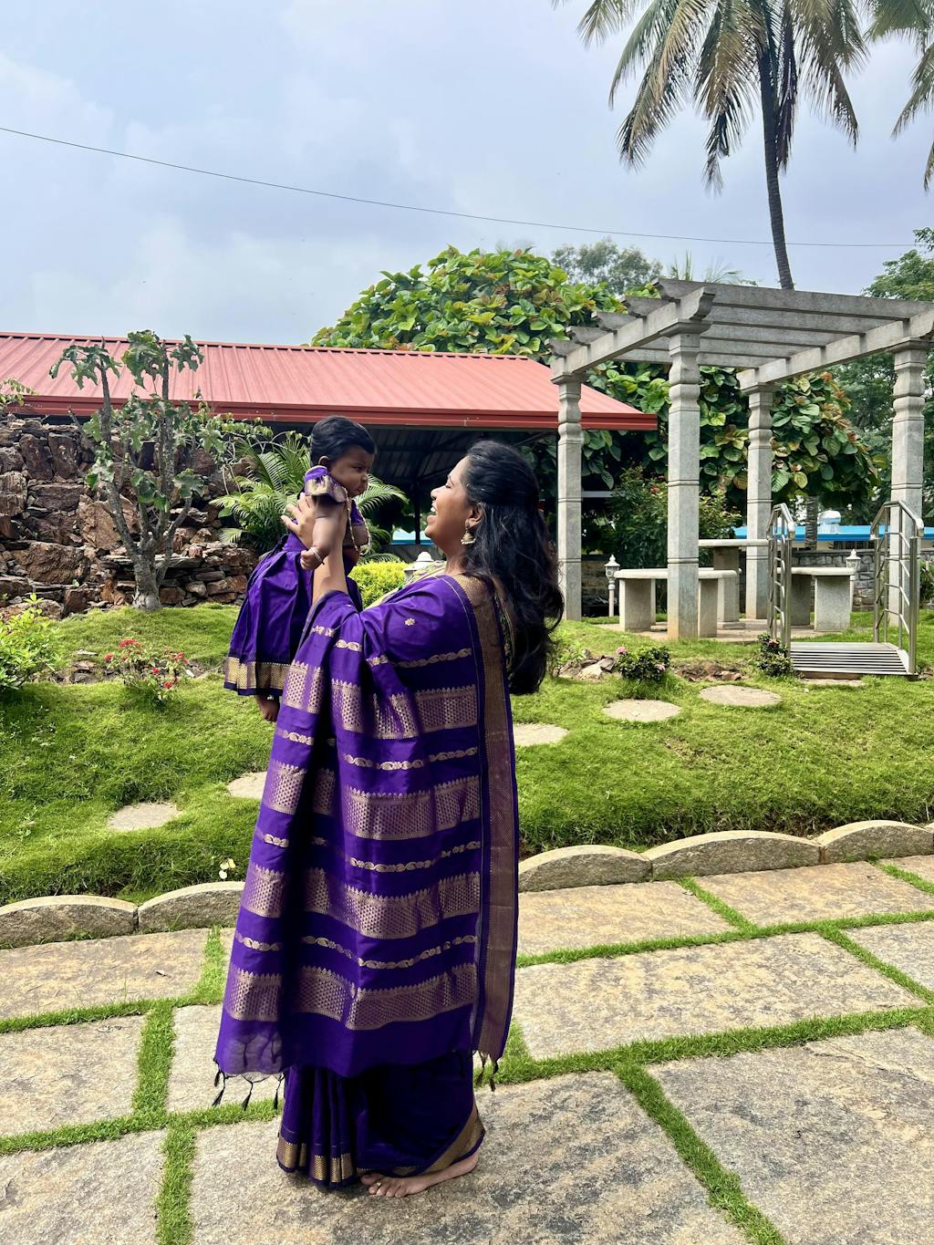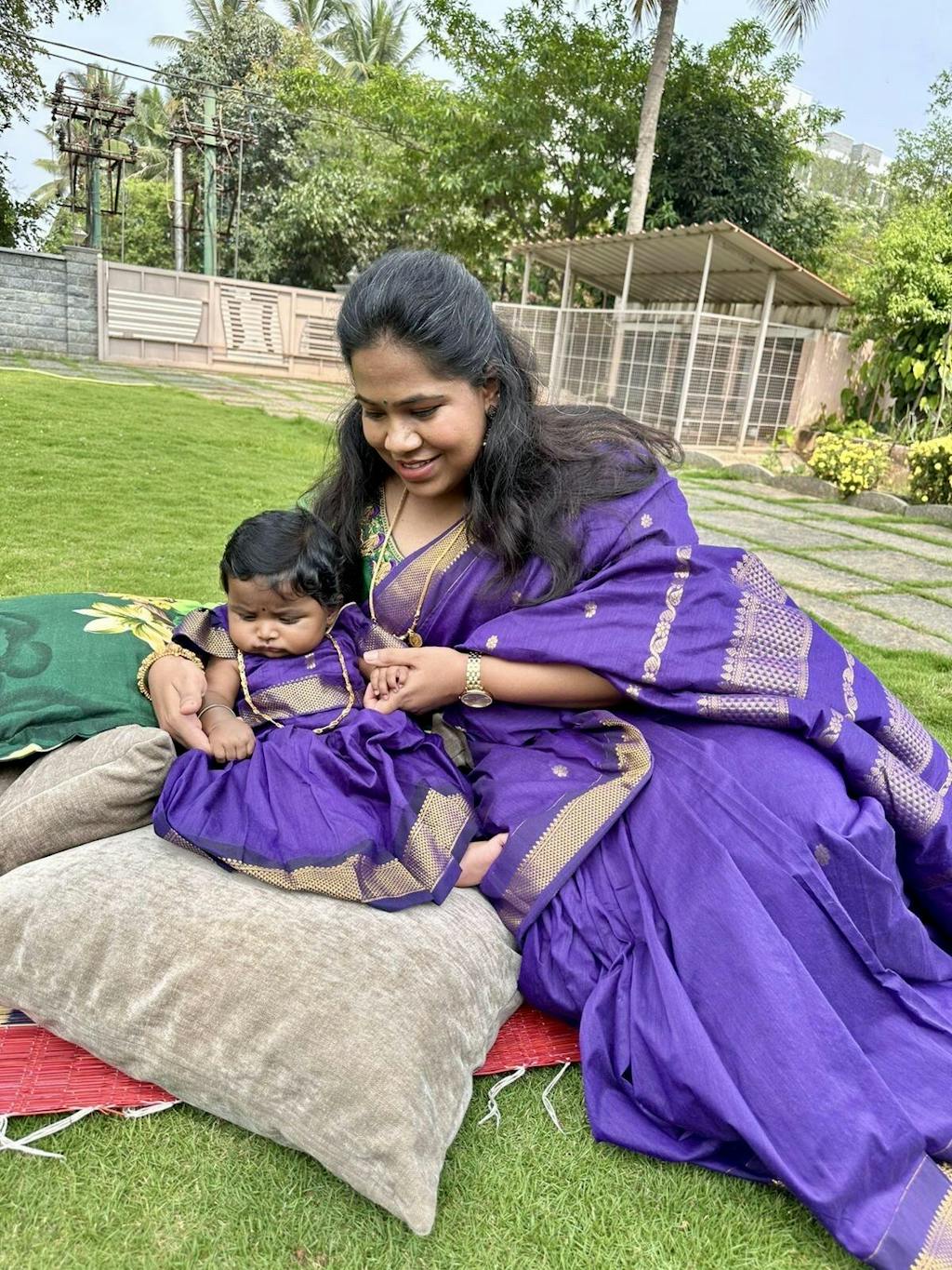Indulge in the luxury of the Aakriti Mom & Daughter set. Made with Semi Kanchi Silk, this vibrant saree and matching Kids Crop Top & Skirt embody the celebration of love between mother and daughter. Perfect for any festival, feel the bond of love as you and your little one wear Virupa's Aakriti Collection.