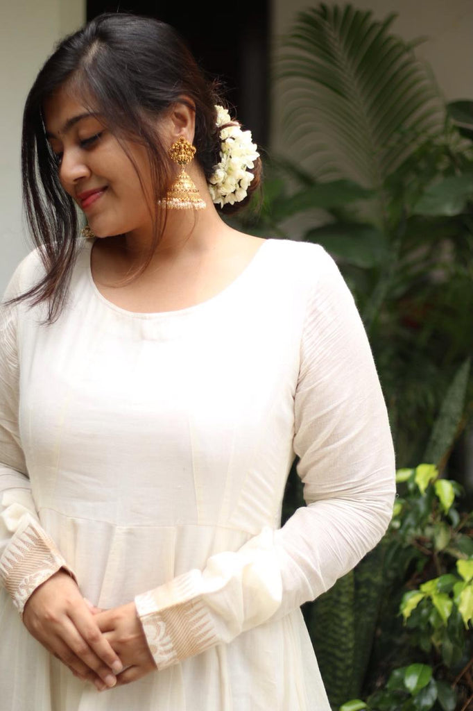 Tags: Onam Outfit, Onam Dress, Onam Collections, Onam White Long Kurta, Onam White with Gold Border Dress, Gold Zari Kerala Kurta, Kerala Traditional Design Kurta, Kerala Boutique Collections, Kerala Gold Embroidery Kurta.