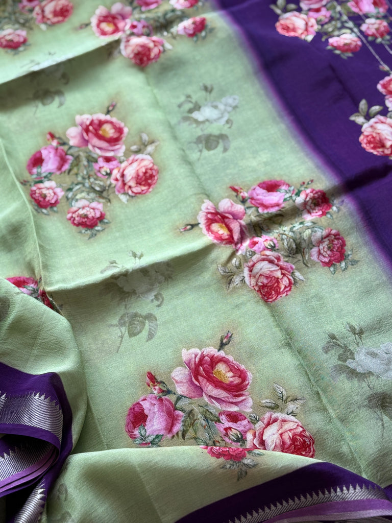 This elegant Mangalgiri Digital Printed Saree is a beautiful blend of traditional South Indian weaving aesthetics and contemporary digital artistry. Crafted on a breathable Mangalgiri base, the saree features graceful floral motifs in refreshing colour combinations that bring a soft, artistic charm to the drape.