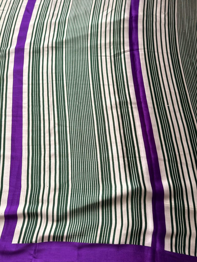 To elevate the look, the saree carries a vibrant violet selvedge, injecting a pop of colour that instantly makes the piece stand out.