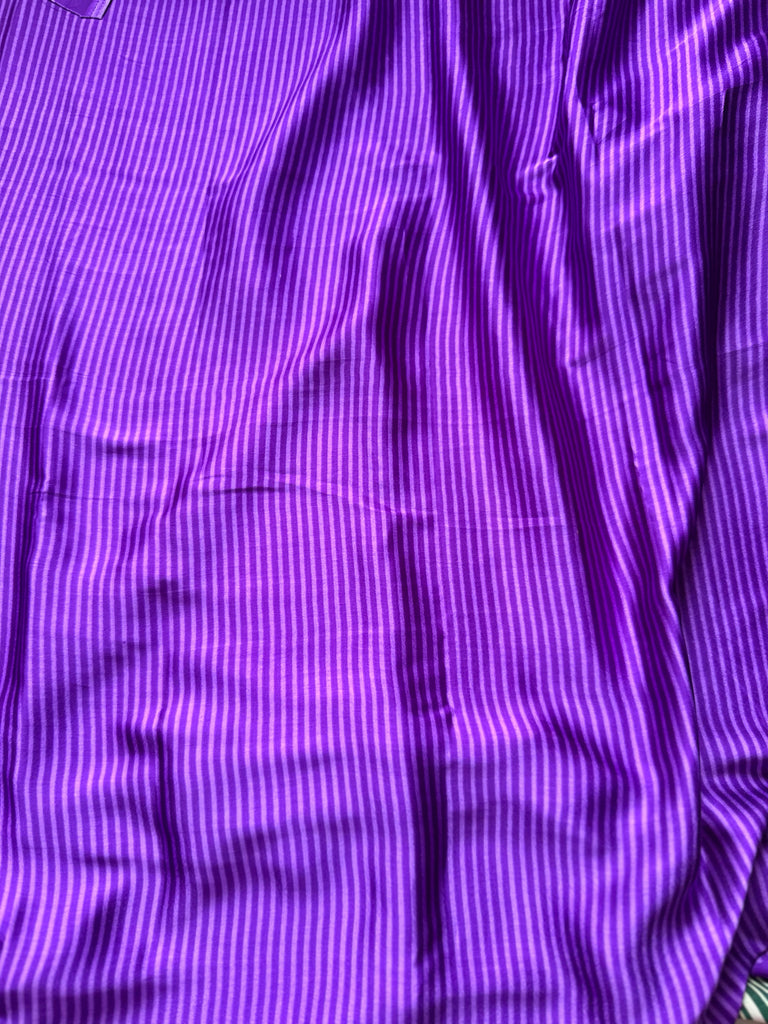 The contrast blouse comes in a bold violet shade, styled with coordinated violet stripes, completing the ensemble with a trendy, fashion-forward finish.