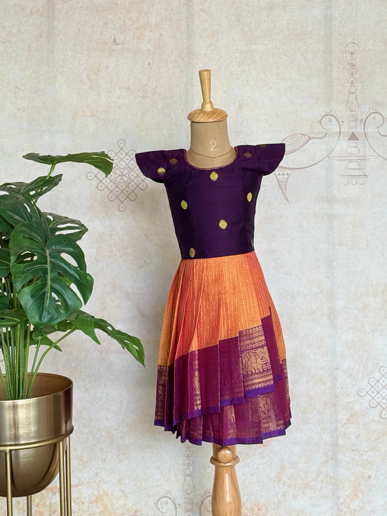 Overlapped skirt with bodice and top is part of our festive collection for kids. Made from Chettinad cotton and raw silk ,it is perfect for celebrating Festive with its traditional and vibrant design. Elevate your child's style and cultural experience with this unique piece.