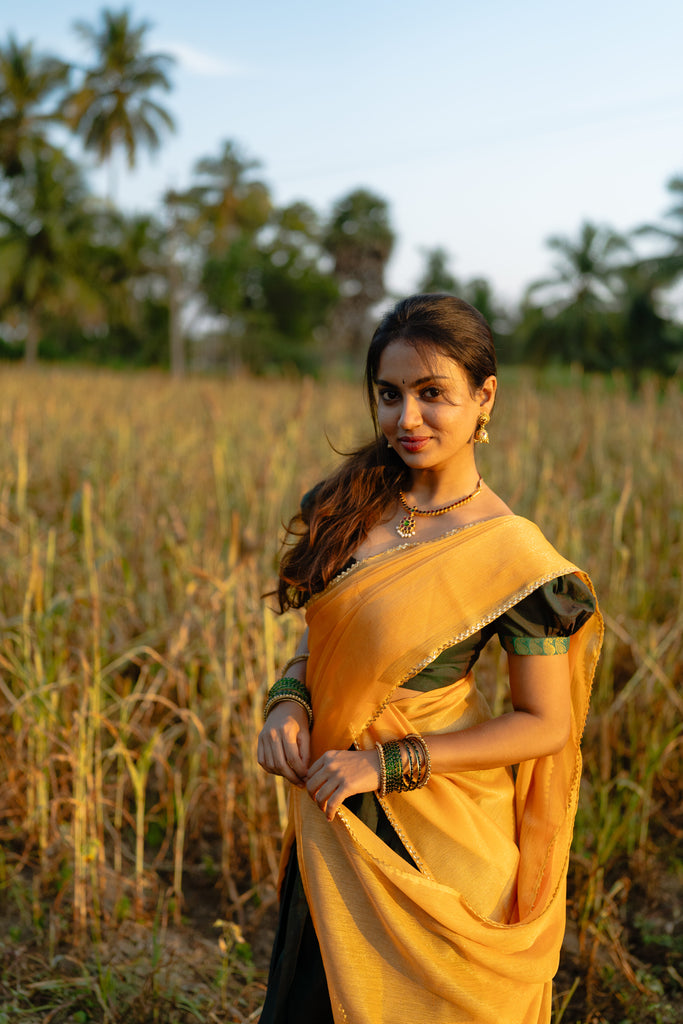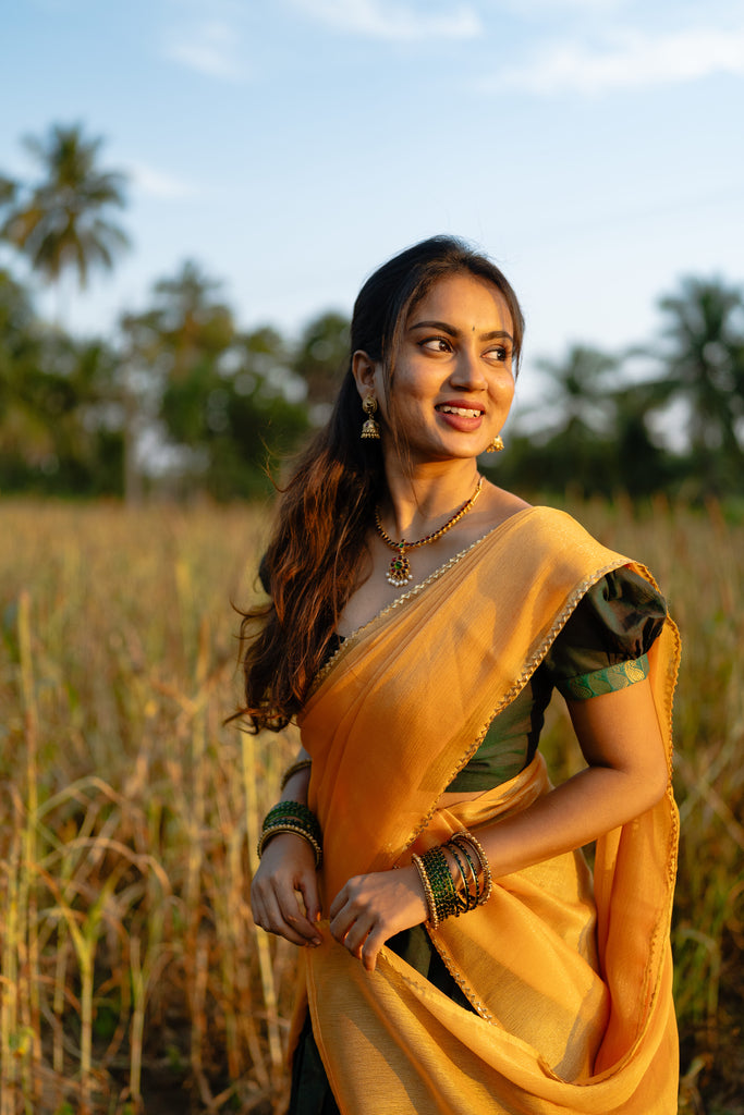 The ensemble is complemented by a lightweight georgette davani, adding graceful movement and a contemporary touch while maintaining the outfit’s traditional charm. Thoughtfully designed for comfort and elegance, this half saree is perfect for festive occasions and cultural celebrations.