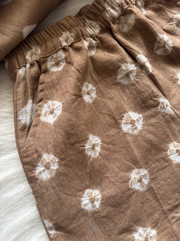 Adorable outfits for your little rockstar! This stylish set features a tie-dyed soft cotton shirt and trousers, designed for all-day comfort and charm. The shirt comes with a smart Chinese collar, adding a trendy touch to this playful look. Perfect for everyday wear, festive fun, or photo-ready moments!